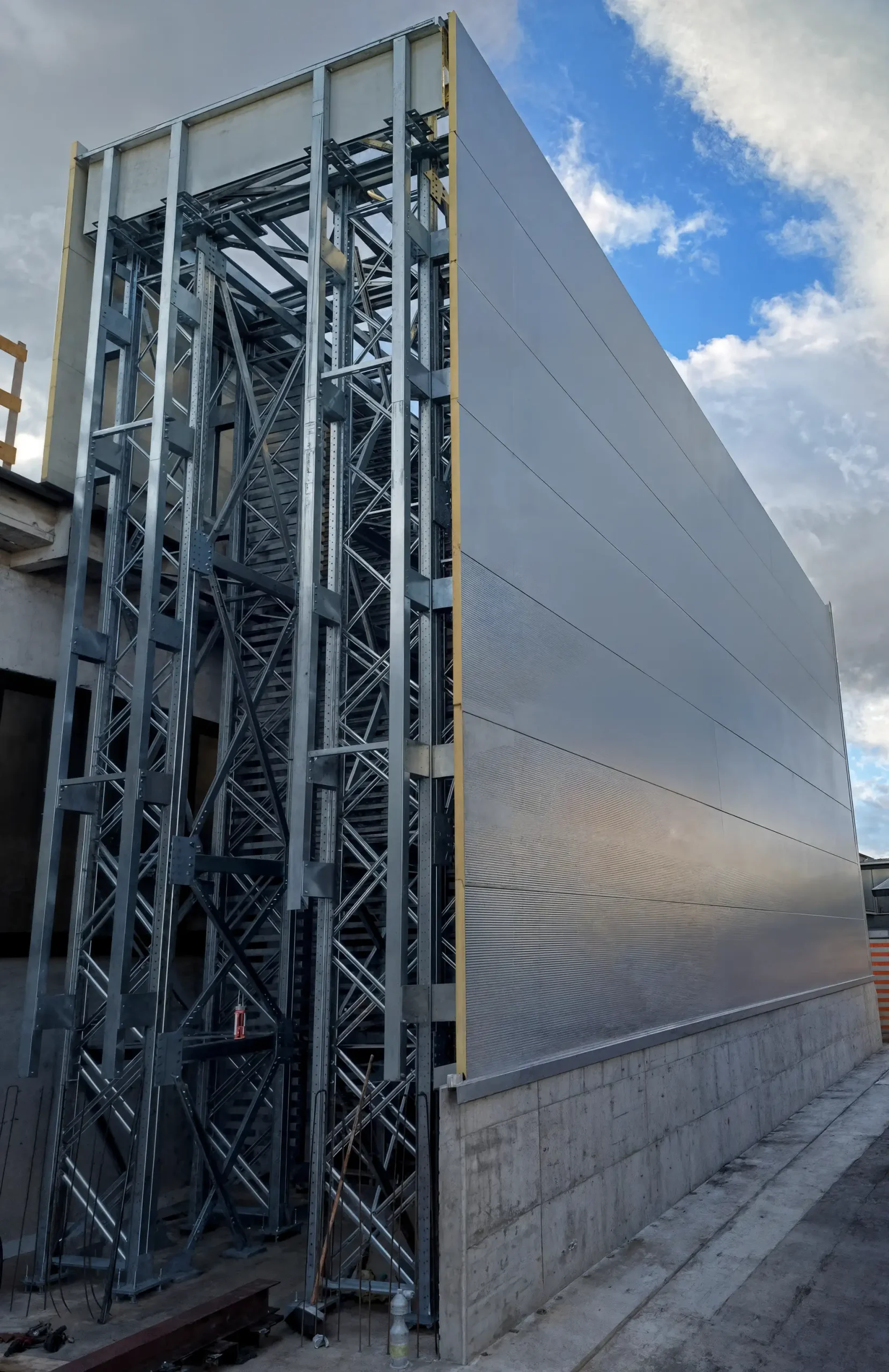 • construction of an external rack-supported vertical system (h 8.35 m)
