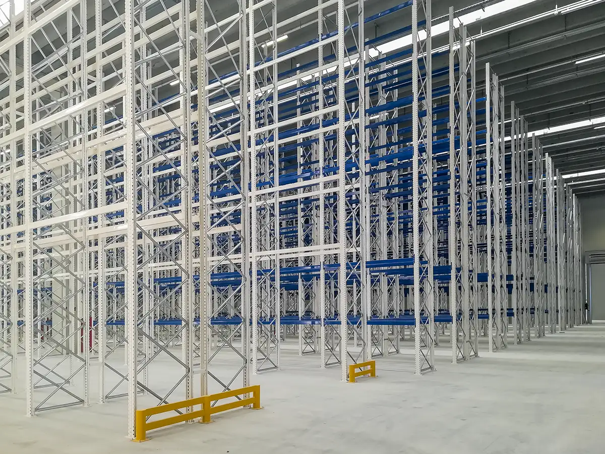 Modulblok designed and delivered a pallet racking system structured by functional areas and different service levels, integrating an automated roller conveyor and automatic infeed/outfeed bays in the zones with the highest flow intensity.