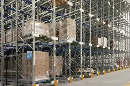 Due magazzini porta pallet automatici sismoresistenti Modulblok, con stocchetti speciali per lo stoccaggio e la movimentazioni di colli sfusi di varie dimensioni e peso, a cui sono stati aggiunti due magazzini porta pallet tradizionali.